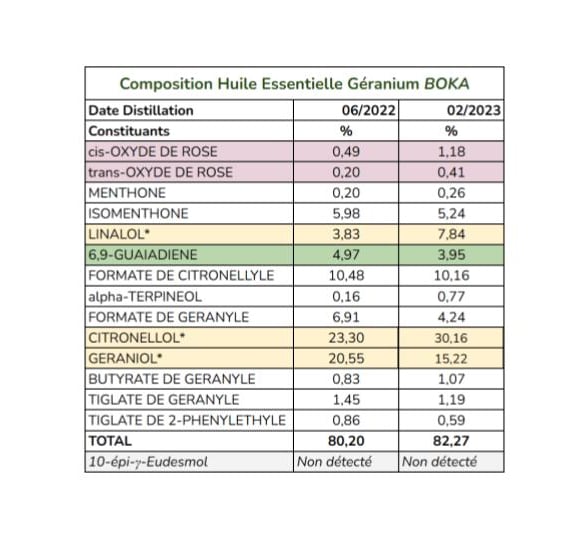 Composition Chimique de l'huile essentielle de Géranium BOKA